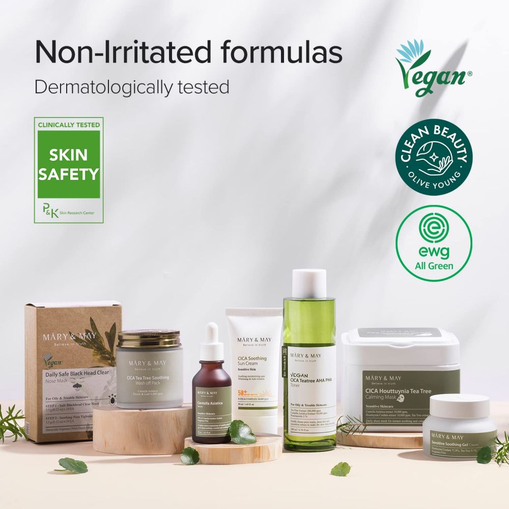Buy Mary & May – Cica Soothing Sun Cream SPF50+ PA++++, a lightweight, fragrance-free sunscreen with Centella Asiatica and Niacinamide for sensitive and acne-prone skin. This vegan, non-greasy formula offers broad-spectrum protection without white cast. Add to Cart for calm, hydrated, protected skin—every day.