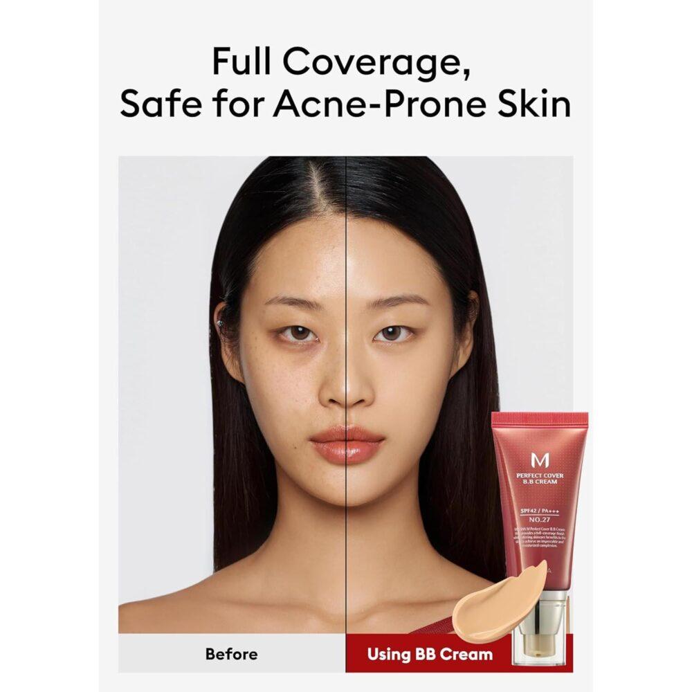 Missha M Perfect Cover BB Cream SPF42 PA+++ in #27 Honey Beige delivers medium to high coverage with hydration and sun protection. Ideal for all skin types, this lightweight formula conceals imperfections, evens skin tone, and leaves your skin radiant and refreshed. Add to your cart today for a flawless, glowing complexion!