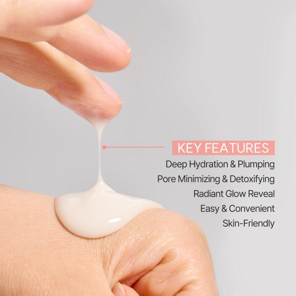 With consistent use, this mask delivers deeply hydrated, plump, and smooth skin. It minimizes the appearance of fine lines, tightens pores, and enhances your skin’s natural radiance.
